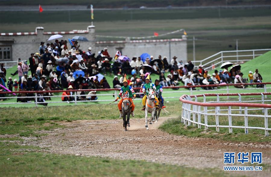 8月10日,騎手馳騁在當(dāng)雄縣賽馬場。新華社記者普布扎西攝。