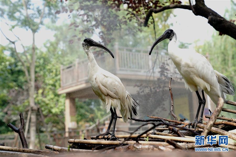 8月11日,上海動(dòng)物園的兩只白鹮在享受噴淋降溫。當(dāng)日,上海最高溫度達(dá)到35攝氏度,上海動(dòng)物園開(kāi)啟園內(nèi)安裝的各種噴淋裝置,讓動(dòng)物們防暑降溫,樂(lè)享清涼。新華社記者張建松攝