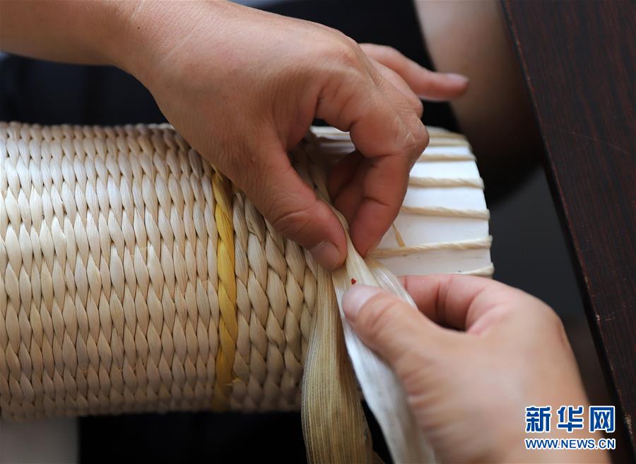 8月12日,一名村民在編制草編工藝品。新華社記者 雒圓 攝
