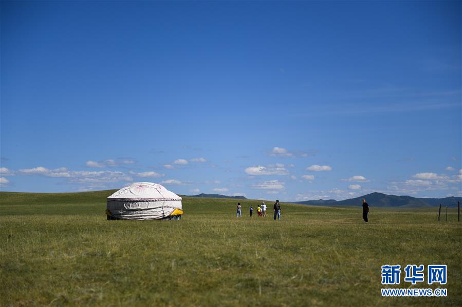 游客在克什克騰旗貢格爾草原上游玩(8月11日攝)??耸部蓑v旗位于內蒙古自治區(qū)赤峰市西北部,境內的湖泊、河流、草原、森林等自然景觀,讓人們流連忘返。新華社記者劉磊攝
