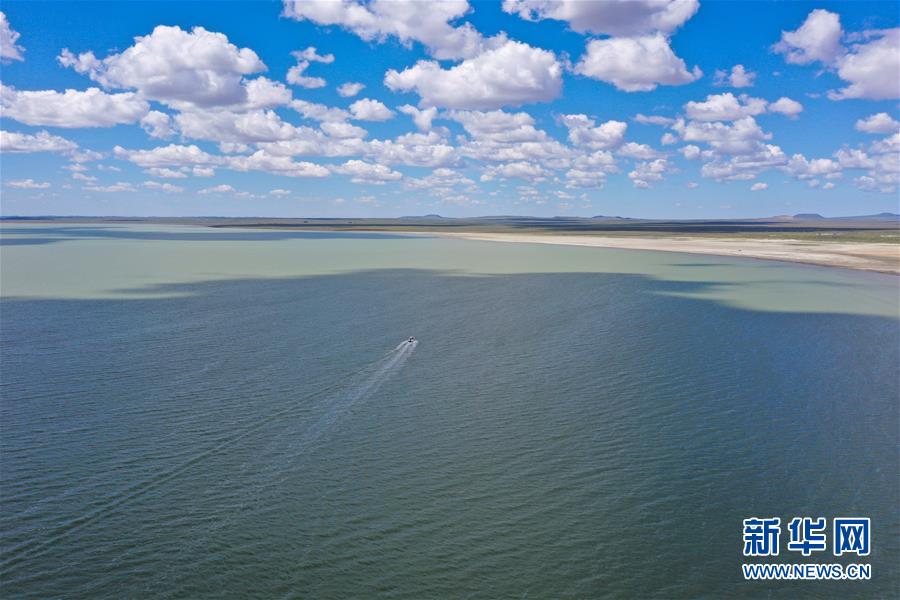 8月11日,游客在克什克騰旗達里諾爾湖乘坐快艇游玩(無人機照片)??耸部蓑v旗位于內蒙古自治區(qū)赤峰市西北部,境內的湖泊、河流、草原、森林等自然景觀,讓人們流連忘返。新華社記者徐欽攝