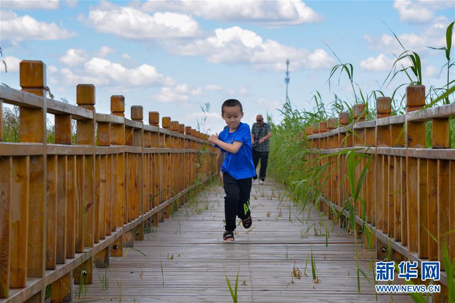 8月11日,游客在克什克騰旗達里諾爾湖北岸景區(qū)游玩。克什克騰旗位于內蒙古自治區(qū)赤峰市西北部,境內的湖泊、河流、草原、森林等自然景觀,讓人們流連忘返。新華社記者徐欽攝