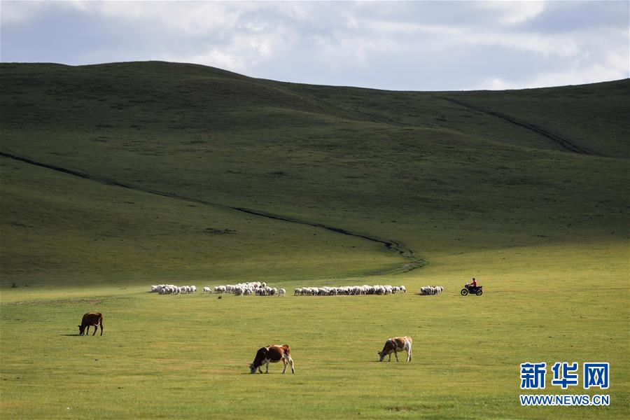 牧民在克什克騰旗貢格爾草原放牧(8月11日攝)??耸部蓑v旗位于內蒙古自治區(qū)赤峰市西北部,境內的湖泊、河流、草原、森林等自然景觀,讓人們流連忘返。新華社記者劉磊攝