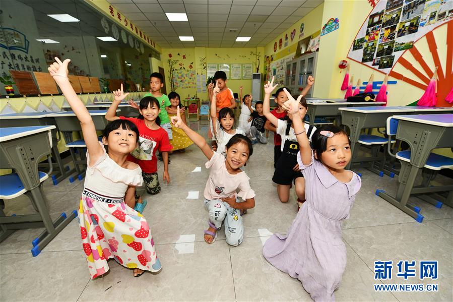8月13日,貴州省思南縣雙塘街道麗景社區(qū)易地扶貧搬遷安置點的孩子們在學(xué)跳舞。新華社記者楊文斌攝