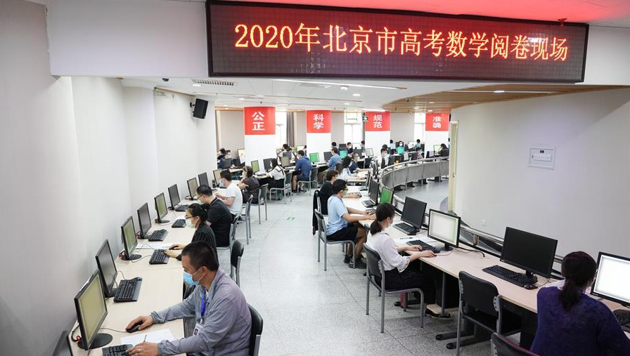 7月16日,評卷老師在位于清華大學(xué)的高考數(shù)學(xué)閱卷現(xiàn)場用計算機系統(tǒng)閱卷。