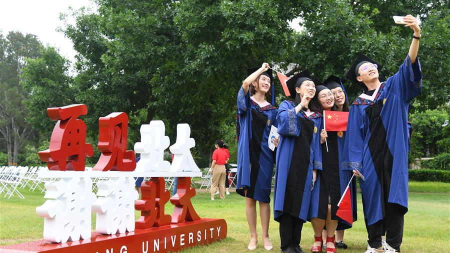 7月2日拍攝的北京大學2020年畢業(yè)典禮辦公樓西側廣場會場。