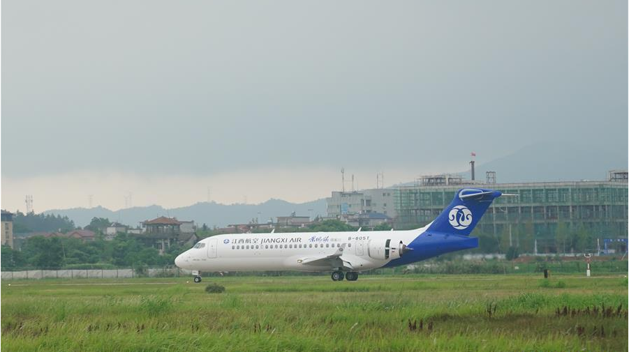 6月10日,“景德鎮(zhèn)”號ARJ21客機降落在江西景德鎮(zhèn)羅家機場。