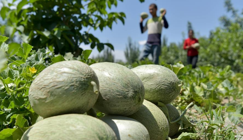 近日,新疆喀什地區(qū)巴楚縣迎來留香瓜的豐收季,瓜農(nóng)們忙著采摘留香瓜,準(zhǔn)備外運銷售。
