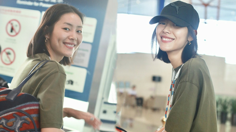 關(guān)曉彤淡定抱臂行走,脖子上掛U型枕毫無(wú)偶像包袱。