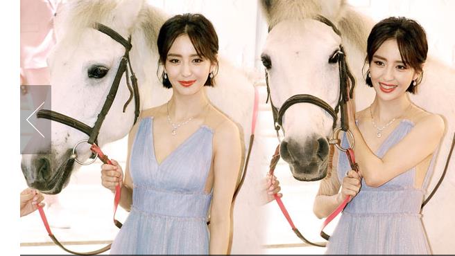 佟麗婭穿淡藍紗裙 與白馬合照甜美迷人仙氣十足