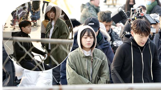 寒冷的北京,二人身著單薄的劇中服裝現(xiàn)身拍攝片場,不顧嚴寒超敬業(yè)。