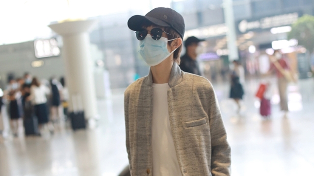 2020年5月20日,四川成都,胡夏現(xiàn)身機(jī)場。