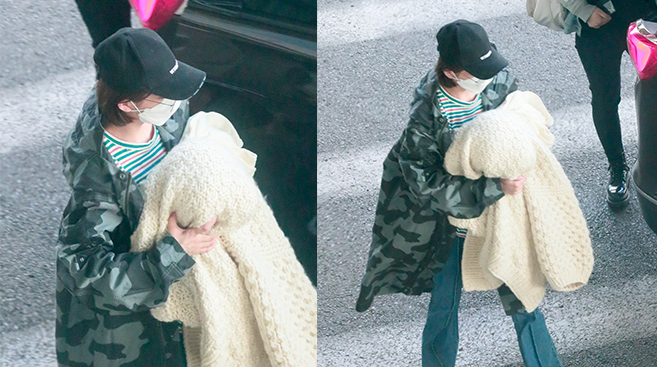 2019年1月5日,北京,袁泉現(xiàn)身機(jī)場。