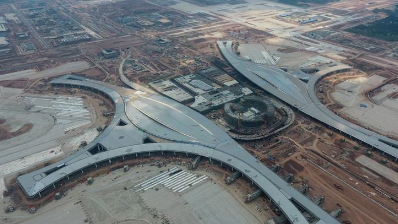 這是6月15日拍攝的成都天府國際機(jī)場建設(shè)現(xiàn)場(無人機(jī)照片)。