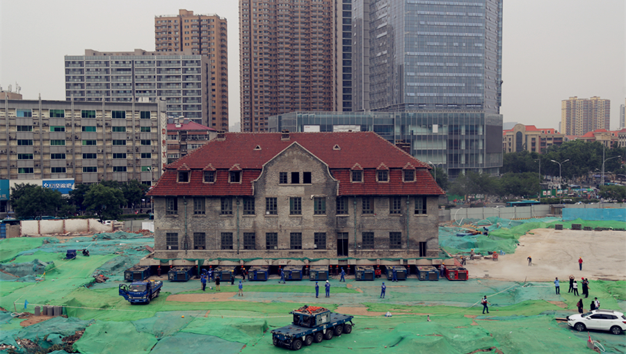 山東濟南2600噸百年修女樓坐“車”準備平移