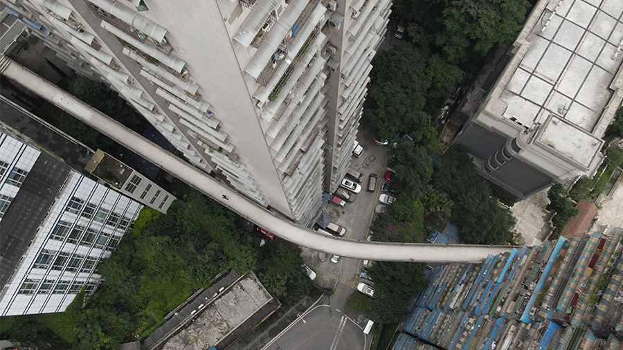 中國最“任性”天橋 離地40米橫穿13層居民樓 網(wǎng)友感嘆:很“重慶”
