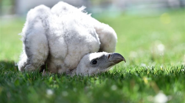5月17日,兩只人工繁育的高山兀鷲亮相西寧野生動物園。