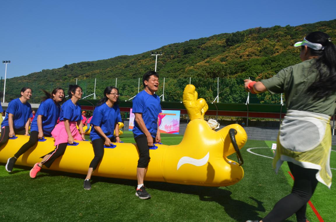 “龍行天下”游戲考驗隊員的協(xié)調(diào)能力和合作精神,既需要技巧也非常消耗體力,隊員們激情滿滿,現(xiàn)場氛圍十分火爆,最終,開心隊(藍隊)以8分的好成績又拿到了第一名。