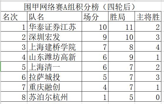 附1:2020年“華為手機杯”中國圍棋男子甲級隊聯(lián)賽網(wǎng)絡熱身賽AB兩組積分排名表
