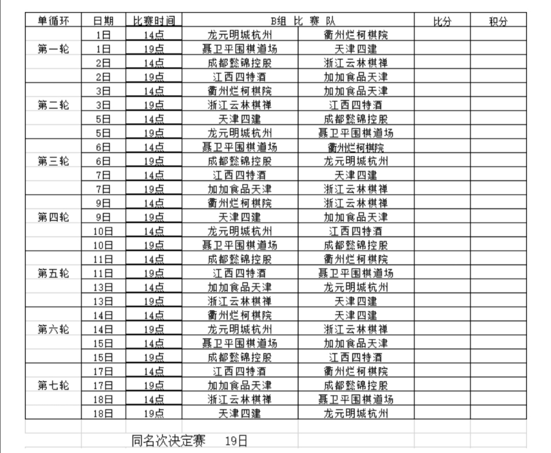 附2:2020年“華為手機杯”中國圍棋男子甲級隊聯(lián)賽網(wǎng)絡熱身賽AB兩組日程表