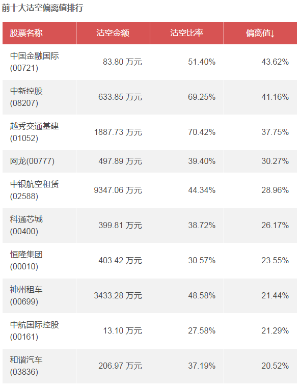 備注:以上數(shù)據(jù)由智通機(jī)器人根據(jù)港交所數(shù)據(jù),經(jīng)過人工智能運(yùn)算后自動生成,并不保證數(shù)據(jù)100%準(zhǔn)確;偏離值為當(dāng)前股票的沽空比率與該股過去30天平均沽空比率的差值。