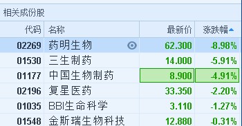 港股異動︱醫(yī)藥股普跌 藥明生物(02269)挫逾8%