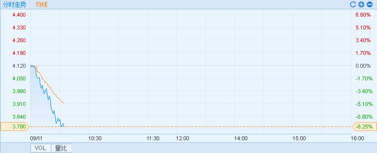 今日早盤A股鋼鐵板塊低開低走,現(xiàn)鋼鐵板塊跌超3%,馬鋼股份(600808)跌逾6%,受此影響,港股馬鞍山鋼鐵股份(00323)也跟隨下跌,截至10時(shí)02分,跌8.25%,報(bào)價(jià)3.78港元,成交額9244萬。