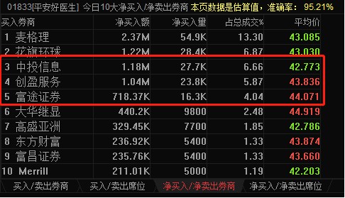 整體而言,中投信息、創(chuàng)盈服務(wù)、富途證券三大聯(lián)席券商合計(jì)凈買入平安好醫(yī)生約300萬(wàn)港元,占其全天成交額的17%,內(nèi)地資金一下已經(jīng)成為該股的主要參與者。