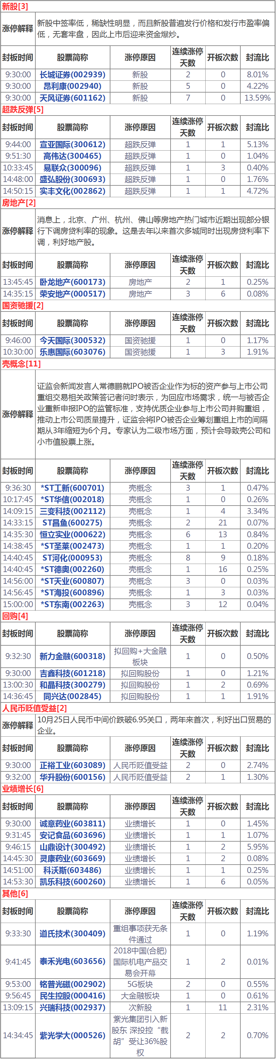 漲停分析:兩市單邊下行 ST板塊逆勢(shì)上漲 (10月29日)