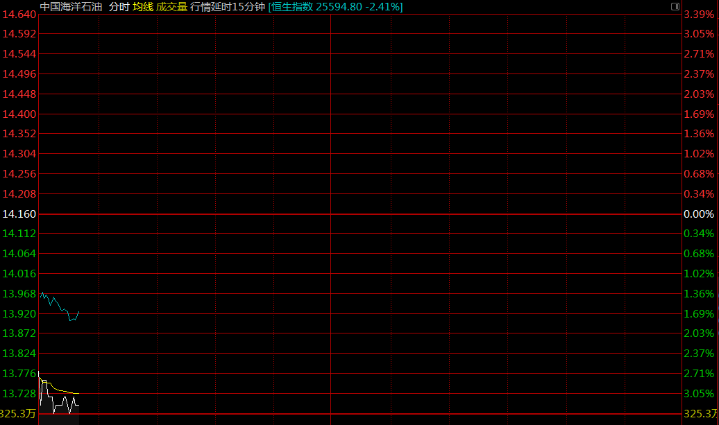 智通財(cái)經(jīng)APP獲悉,受國際原油價(jià)格影響,“三桶油”集體下挫,截至10時(shí)33分,中海油(00883)跌3.67%,報(bào)價(jià)13.64港元,中石油(00857)跌2.64%,報(bào)5.89港元,中石化(00386)跌2.2%,報(bào)6.66港元。(王岳川)