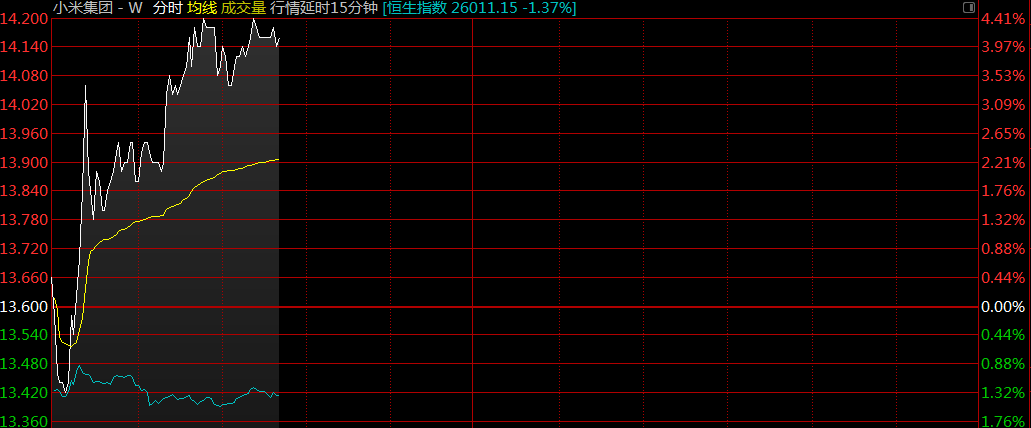 三季度業(yè)績(jī)超市場(chǎng)預(yù)期小米(01810)現(xiàn)漲2.21%