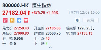 恒指12月開門大漲675點(diǎn)成交激增至1296億港元
