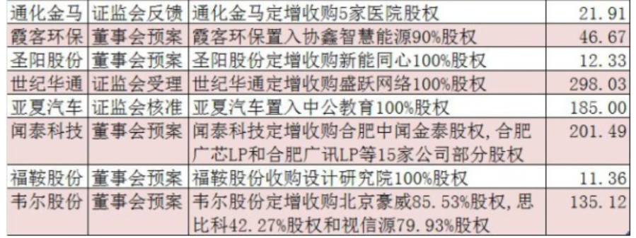并購(gòu)重組經(jīng)歷近二年的低谷后,政策由緊到松,目前快速回暖,概念股逐步走強(qiáng),近日又有多家公司公布并購(gòu)方案;