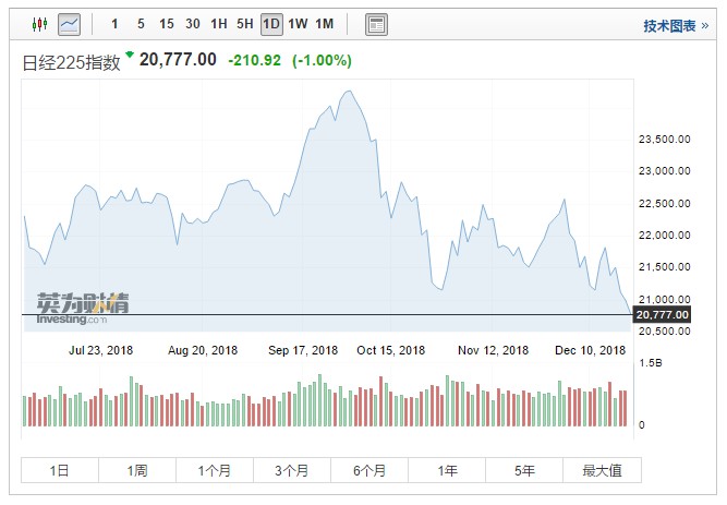 智通財經(jīng)APP獲悉,美聯(lián)儲如期加息,同時下調(diào)明年加息預(yù)測,但仍不如市場預(yù)期的鴿派。受此影響,12月20日,日本日經(jīng)225指數(shù)低開近1%,報20779.93點,截至發(fā)稿,跌逾1%;日本東證指數(shù)低開0.8%,報1544.42點。韓國首爾綜指低開0.7%。(劉瑞)