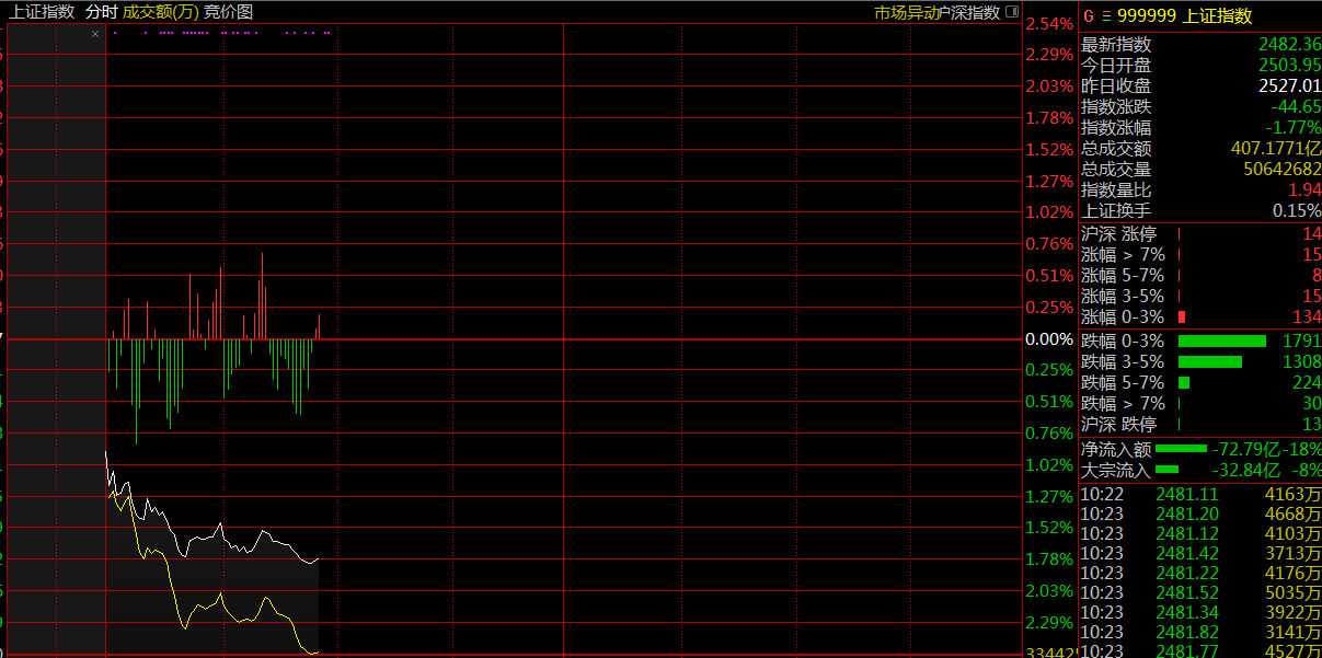 受美股加速下跌影響,12月25日,兩市大幅低開(kāi),滬指開(kāi)盤報(bào)2503.95點(diǎn),跌0.91%。深成指開(kāi)盤報(bào)7308.61點(diǎn),跌1.14%。創(chuàng)業(yè)板開(kāi)盤報(bào)1269.14點(diǎn),跌1.18%。