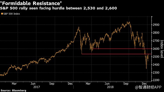 下圖顯示了標(biāo)準(zhǔn)普爾500指數(shù)(S&P500)10-11月10%的跌幅,但跌幅并未持續(xù)?,F(xiàn)在,過(guò)去的支撐位已經(jīng)變成了指數(shù)的頂部。