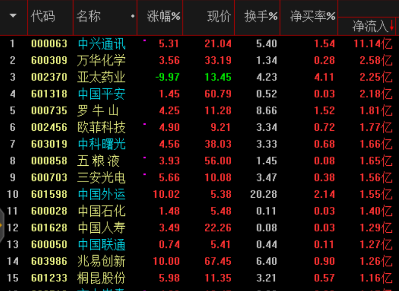 資金流向看行業(yè)龍頭受到短期資金青睞: