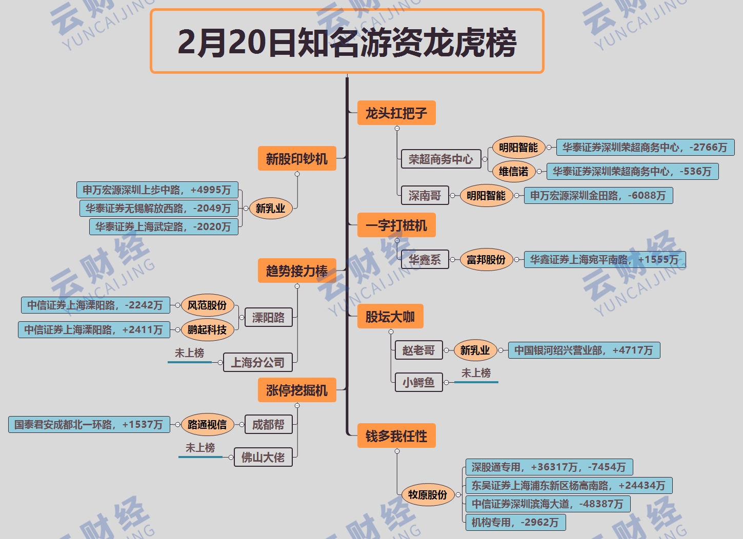 次新股新乳業(yè)(002946)漲停,申萬宏源深圳上步中路買入4995萬,趙老哥買入4717萬,華泰無錫解放西路賣出2049萬,華泰上海武定路賣出2020萬。