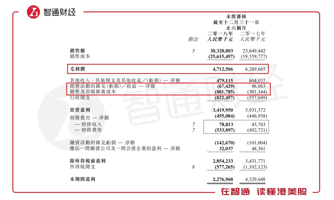 此次業(yè)績大幅下滑主要由原材料成本上升及產(chǎn)品售價下跌所致,雖銷售額同比增長,但也擋不住毛利潤下降拖動盈利下滑。除此之外,經(jīng)營活動匯兌損益同比下降170%,銷售及市場推廣成本同比增長了75.88%,也拉低了經(jīng)營盈利的整體增速。