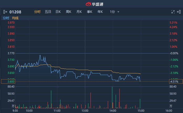 五礦資源(01208)今日震蕩走低,截至14時(shí)57分,跌4.51%,報(bào)3.6港元,成交額達(dá)4480萬(wàn)港元。