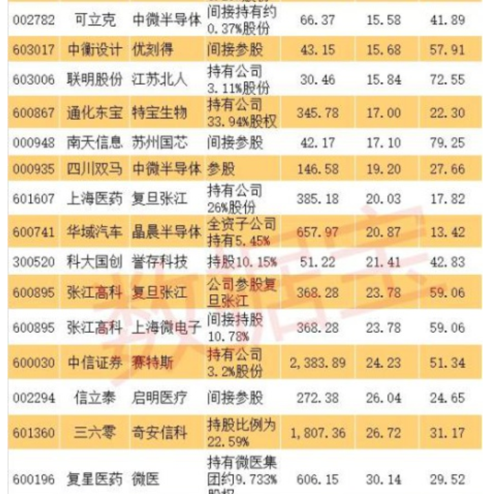 科創(chuàng)板影子股:首批創(chuàng)業(yè)板潛在公司背后有超過(guò)50只影子股,而這些影子股大多是間接持股。從持股比例來(lái)看,最大的是金固股份,持有泰恩達(dá)100%股權(quán)。其他影子股持股比例較大的還有,通化東寶持有33.94%特寶生物、上海醫(yī)藥持有26%復(fù)旦張江、三六零持有22.59%奇安信科、張江高科間接持有10.78%上海微電子、綠地控股持有13%深蘭科技、力源信息持有10.8%云漢芯城、科大國(guó)創(chuàng)持有10.15%譽(yù)存科技、南京高科持有8.65%賽特斯、駱駝股份持有6.25%金達(dá)萊等。