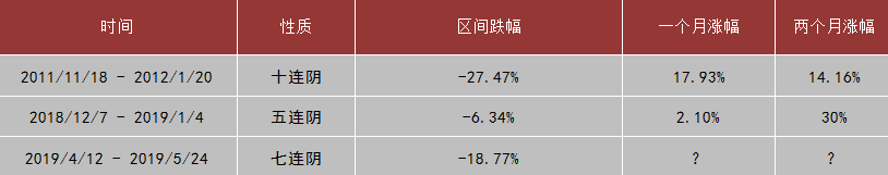 上周市場周一探底后,在稀土、芯片、華為概念等貿(mào)易戰(zhàn)板塊個股帶領(lǐng)下上破2900點,最終由于量能不濟(jì),震蕩回落。最終,上證指數(shù)報收2852.99點,周跌幅-1.02%;深證綜指報收1496.03點,跌-2.43%;創(chuàng)業(yè)板指收1443.75點,跌-2.37%。值得一提的是,創(chuàng)業(yè)板指數(shù)周k線七連陰,統(tǒng)計表明,創(chuàng)業(yè)板歷史上,周k線出現(xiàn)五連陰及以上的情況僅有兩次,無一例外的對應(yīng)了階段性底部區(qū)域。對應(yīng)后續(xù)一個月及兩個月的漲幅如下表所示: