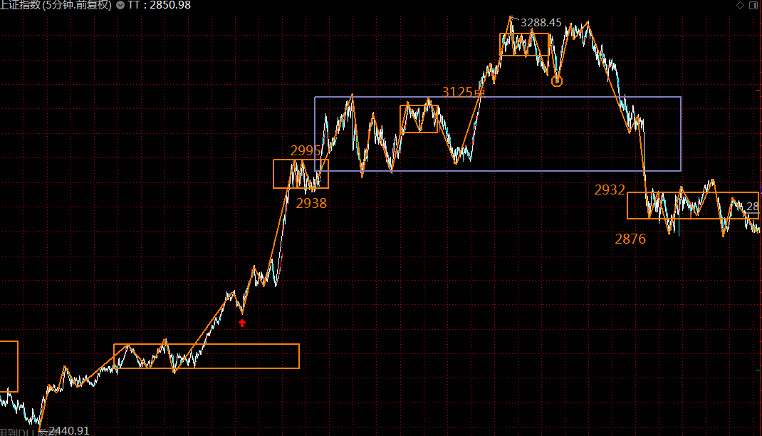 下圖為上證指數(shù)五分鐘級別走勢結(jié)構(gòu),第三類賣點已過,第一類買點正在構(gòu)建中,預(yù)計最差的情況,周一周二即可走完這波調(diào)整走勢,第一目標(biāo)回補(bǔ)上方3050處的貿(mào)易戰(zhàn)缺口。