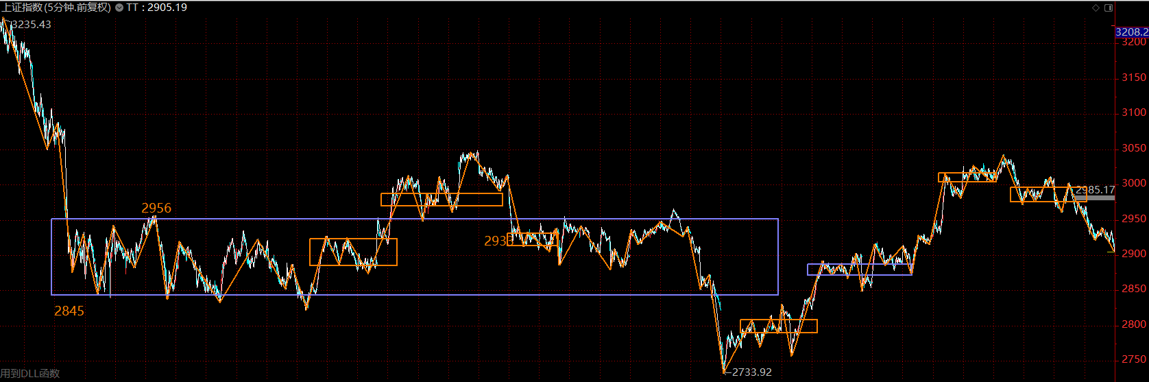 上證指數(shù)已跌回了大中樞內(nèi)部,目前最強支撐在中樞下軌2850附近。同時,從短線看,目前處于構建五分鐘下跌趨勢第二個中樞的階段,即所謂的短線越跌越買的階段。投資者可稍微忽略指數(shù),著手分批布局三季報超預期個股,靜待反彈。