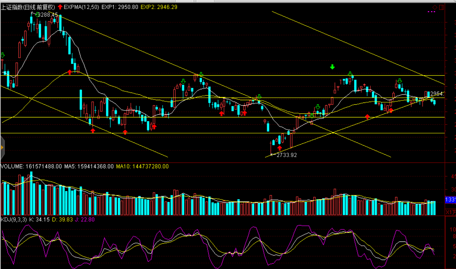 技術(shù)面:短期弱勢震蕩、滬綜指圍繞2950點一線上下波動。