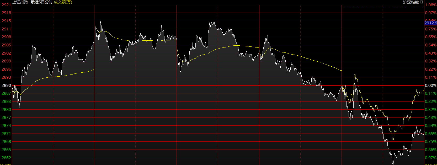 上證指數(shù)上周在等待中樞擴展完成后破位下跌,破位力度比較小,而對結(jié)構(gòu)分解后發(fā)現(xiàn),這次大中樞的盤整背馳,第一段以五分鐘趨勢的形式完成,第二段以盤整的形式完成,且已進入了尾聲。因此,料此輪主跌段不會太久,繼續(xù)維持在前序中樞下軌2850附近企穩(wěn)的判斷。