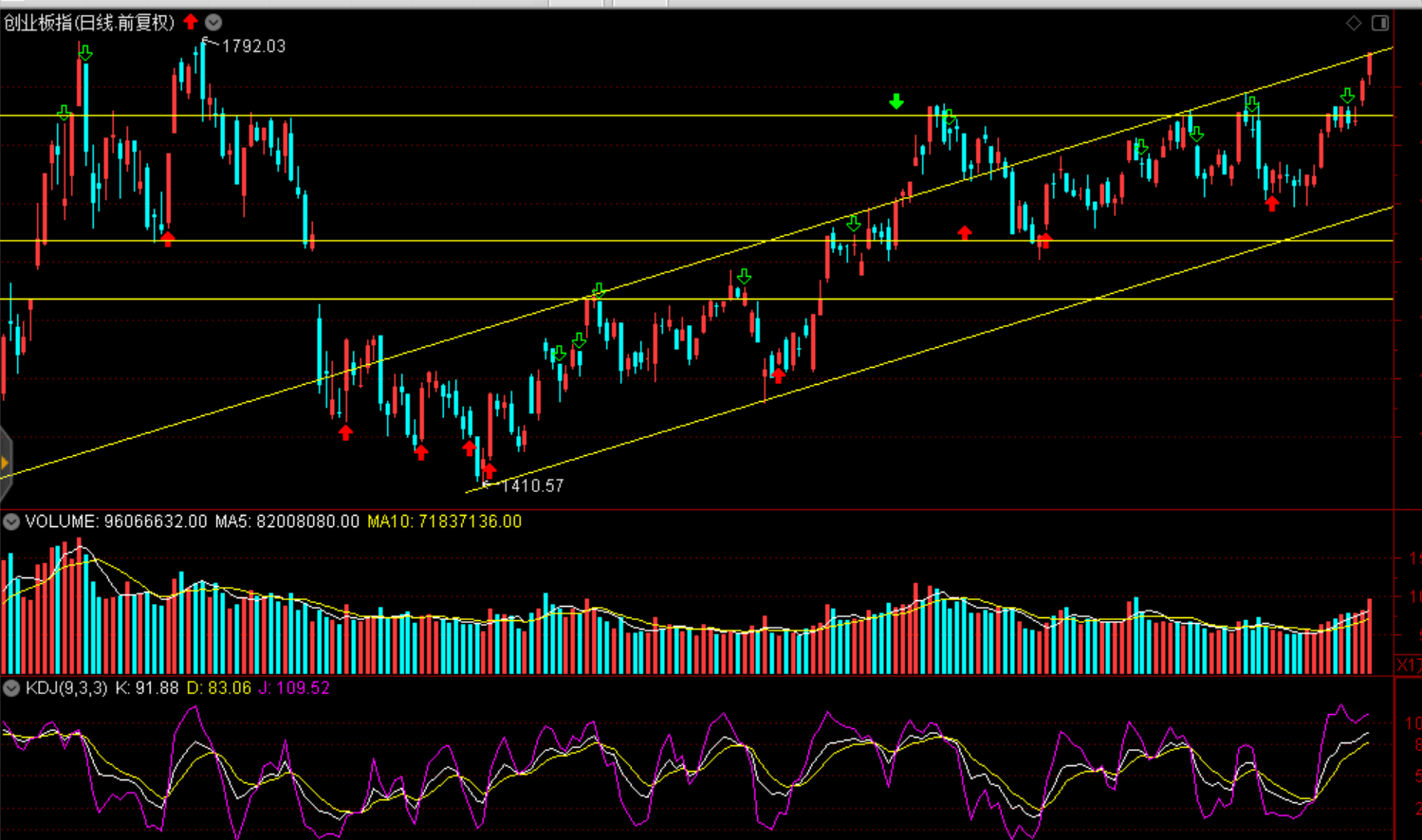 技術(shù)面:短期量價配合,延續(xù)震蕩反彈;滬弱深強(qiáng),創(chuàng)業(yè)板50作為市場風(fēng)向標(biāo),謹(jǐn)慎創(chuàng)業(yè)板50(399673)上檔面臨去年5月密集成交區(qū)壓力(1500點(diǎn)一線);創(chuàng)業(yè)板指數(shù)在此觸及自6月以來上升通道上軌,短期謹(jǐn)慎震蕩回落。