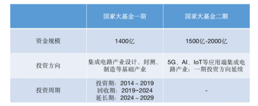 二期更側(cè)重于應(yīng)用端,例如下游5G、AIoT等技術(shù)引領(lǐng)的集成電路應(yīng)用產(chǎn)業(yè);大基金二期將關(guān)注刻蝕機(jī)、薄膜設(shè)備、測(cè)試設(shè)備和清洗設(shè)備等領(lǐng)域企業(yè),另外將開展光刻機(jī)、化學(xué)機(jī)械研磨設(shè)備等核心設(shè)備以及關(guān)鍵零部件的投資布局。