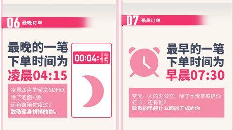 在辦公室下單的時(shí)間也反映了白領(lǐng)們的加班情況。數(shù)據(jù)顯示,北京、上海、廣州、深圳等一線城市毫無(wú)懸念的榜上有名,最晚下單時(shí)間是凌晨04:15,最早是早晨07:30。為了出方案、趕項(xiàng)目和完成KPI,他們披星戴月,好在還有數(shù)不清的咖啡和紅牛默默陪伴。