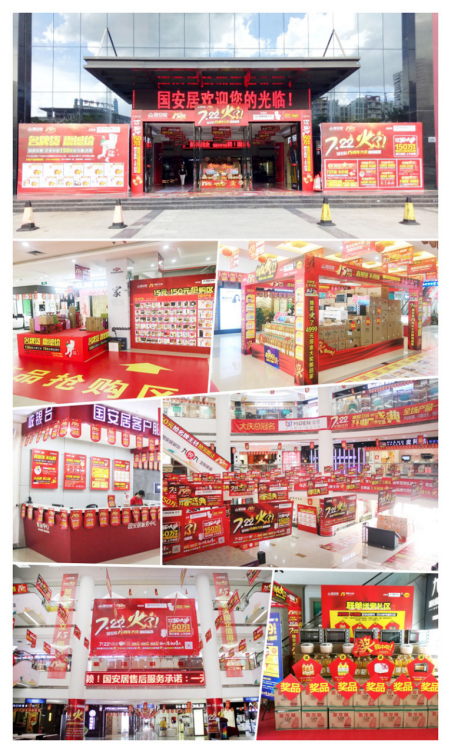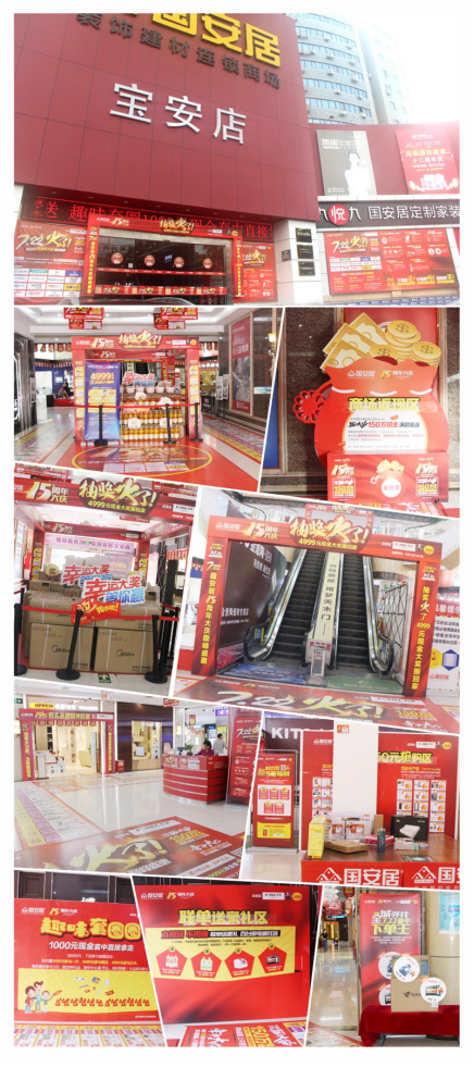 如今,國(guó)安居15周年大慶的消息已傳遍鵬鵝兩城。11重優(yōu)惠成為眾多裝修業(yè)主的福音,目前,各分店全部張燈結(jié)彩煥然一新,高掛巨幅折扣牌,各環(huán)節(jié)的獎(jiǎng)品堆積如山,戶外廣告鋪天蓋地,有圖有真相。